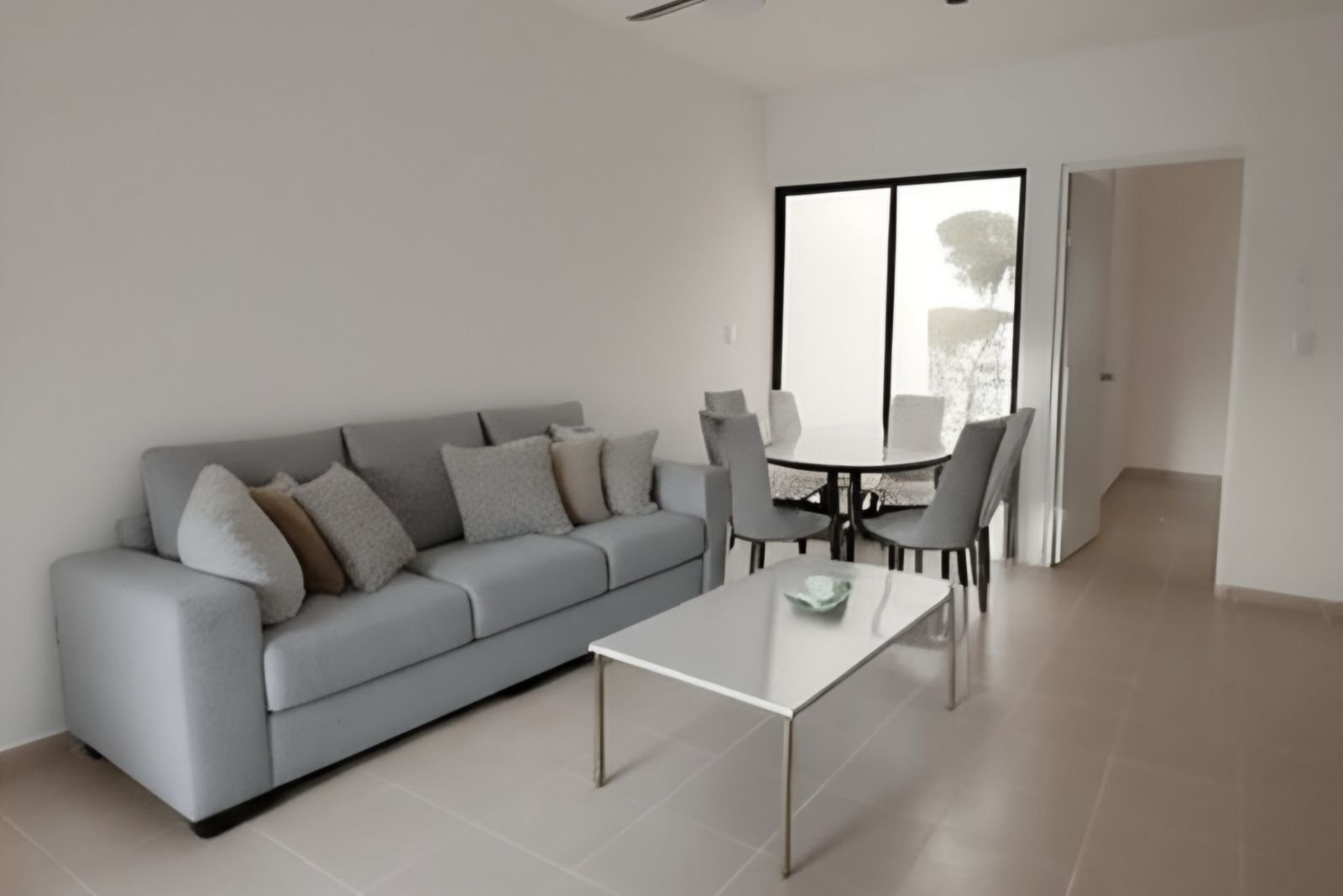 Esta casa en Kanasín ofrece un diseño práctico y funcional, pensado para cubrir las necesidades del día a día. En la planta principal cuenta con una sala-comedor que conecta mediante una puerta corrediza al patio trasero, permitiendo aprovechar mejor los espacios interiores y exteriores.